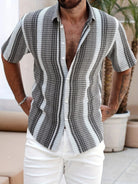 ✅ソフトなニット素材:ソフトなニットブレンド素材を使用し、肌触りが優しく、 微妙ななテクスチャーが独特な触り心地を提供します。この触感は標準的なコットンシャツとは一線を画し、洗練されたディテールを好む方におすすめです。快適さと個性を両立させたシャツです。