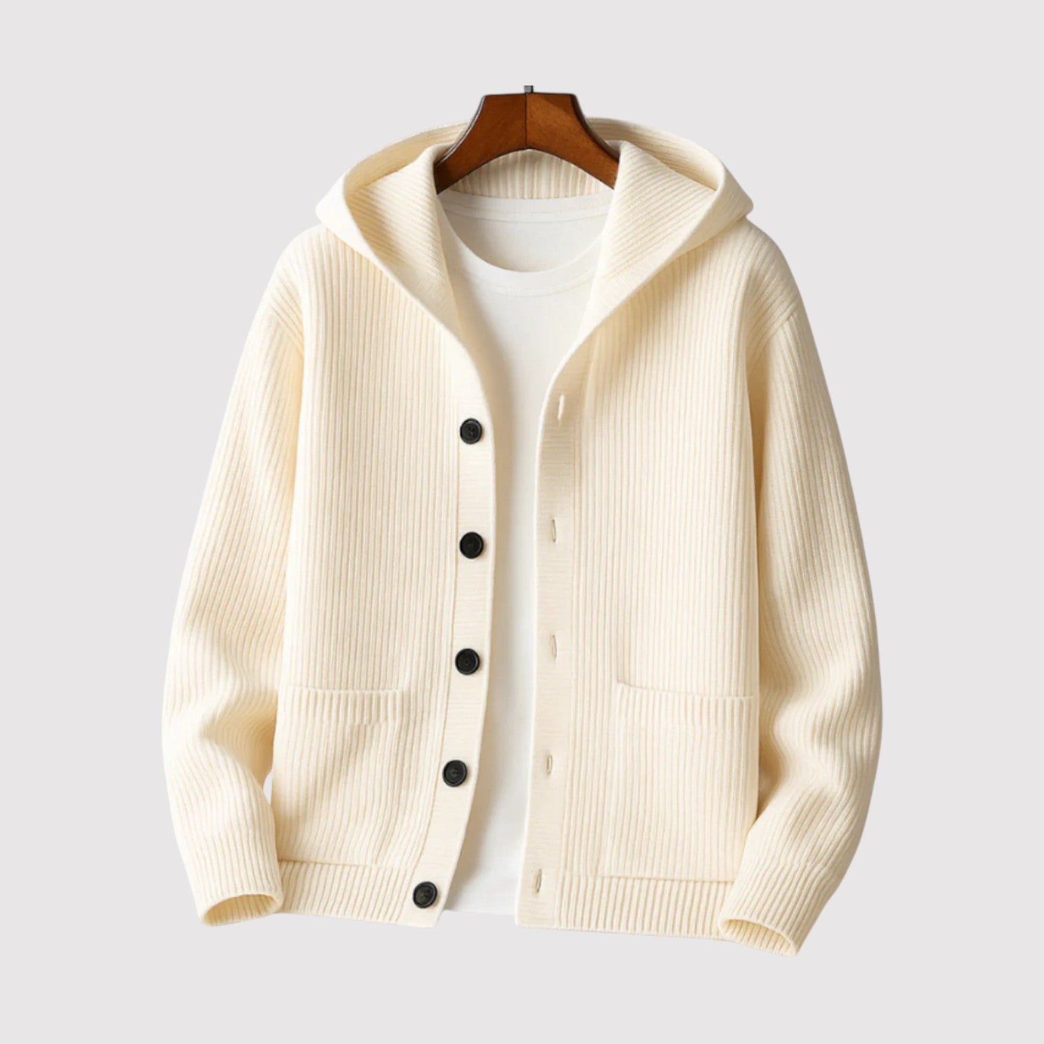 この上質なフーデッドカーディガンを羽織ると、大人らしい落ち着いた自信がふっとまとえる一着。控えめでありながら、装いを自然に引き立ててくれます。