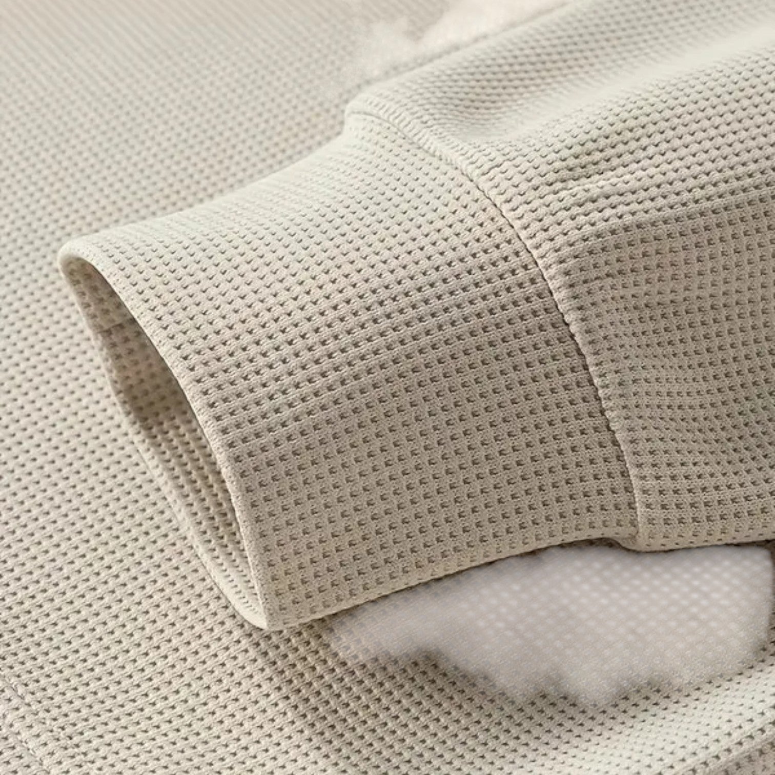 一日を静かな自信とともに始められる一枚——このプレミアム・レイヤード・ロングスリーブは、控えめでありながら洗練された印象を自然に引き立てます。