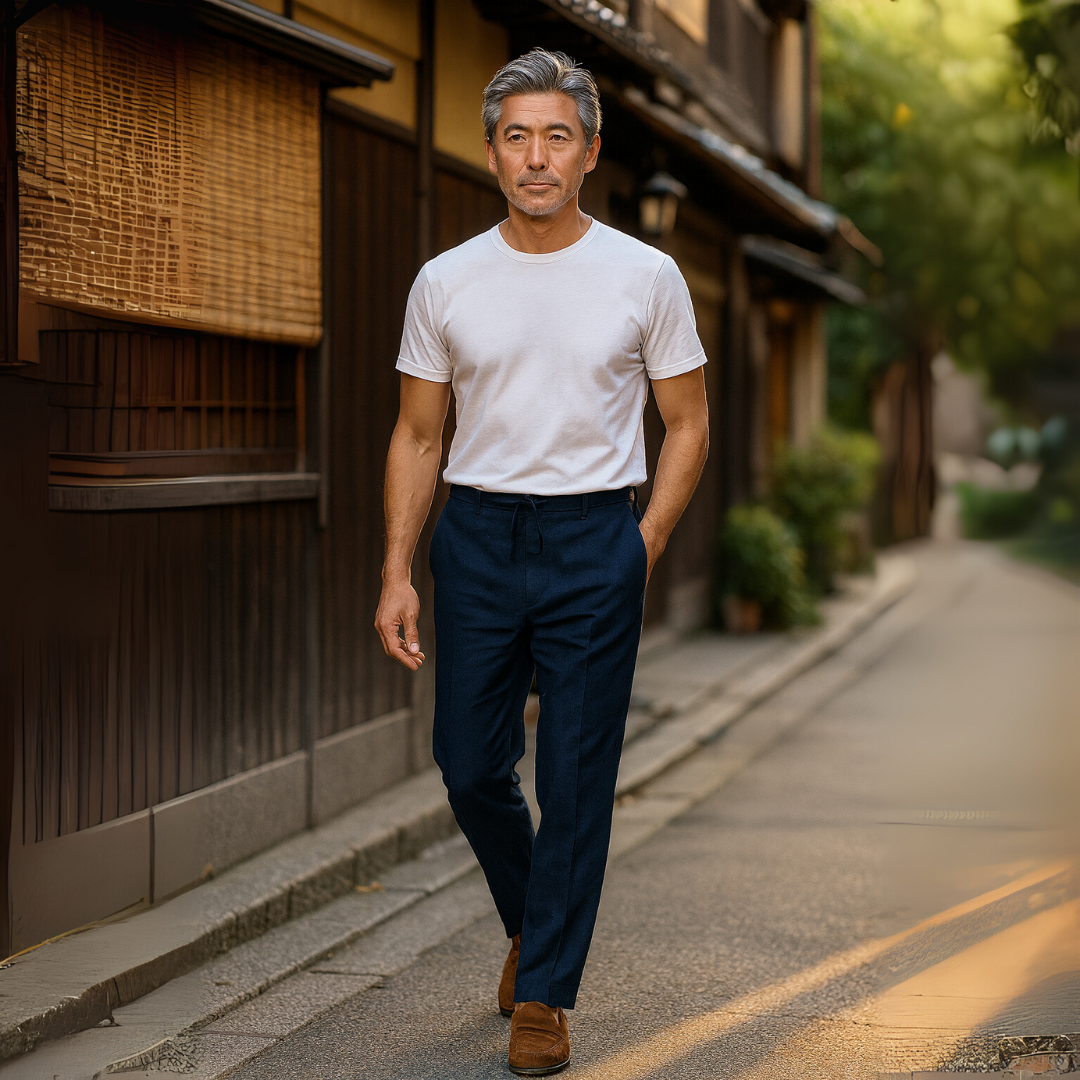 Naoki - 通気性抜群 スリムフィット カジュアルパンツ