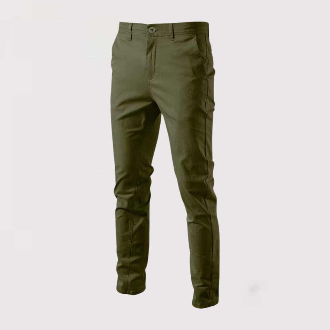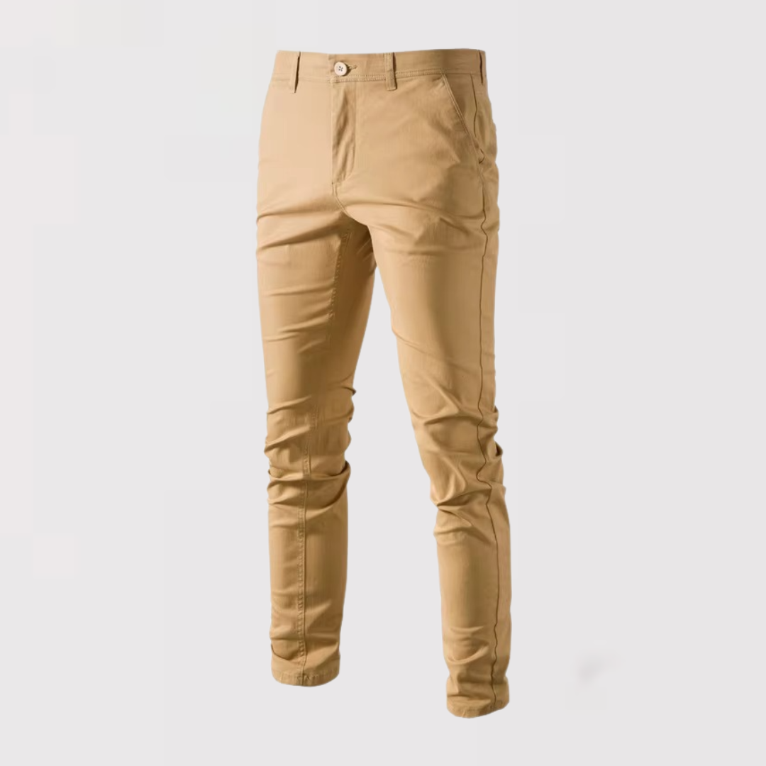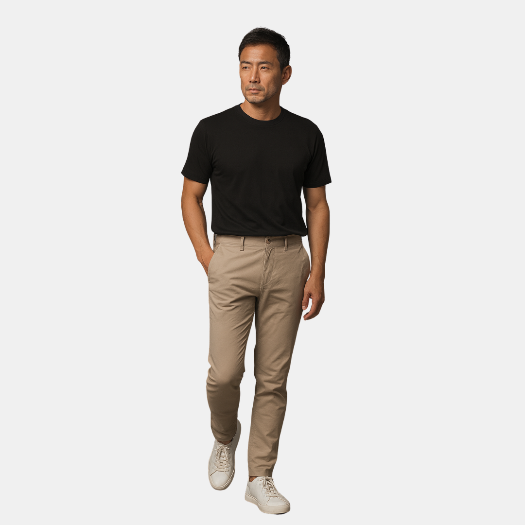 美しいスリムシルエットで、オンにもオフにも対応できる万能チノパンが登場。