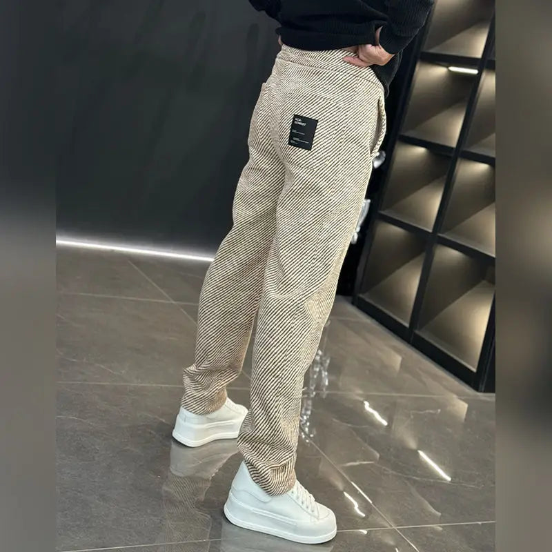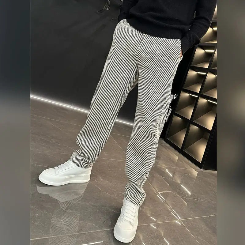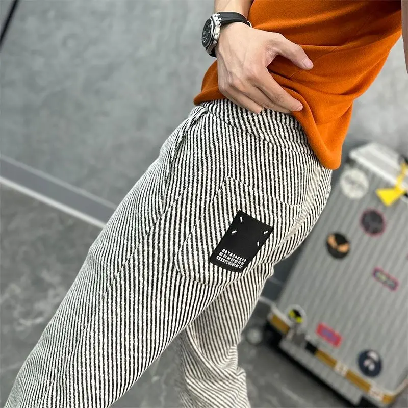 動きやすさとスタイルを両立:トシロ・ストライプ・ワイドパンツ!