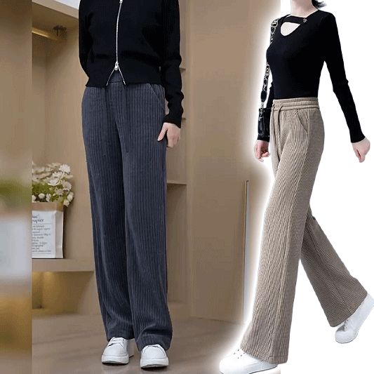Akiko – 暖かいフリース裏地付きのエレガントなワイドパンツ