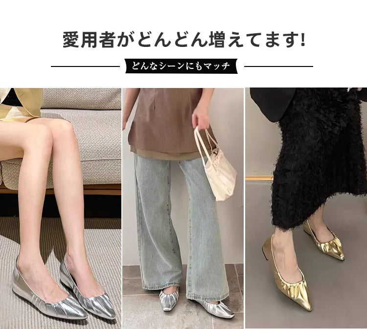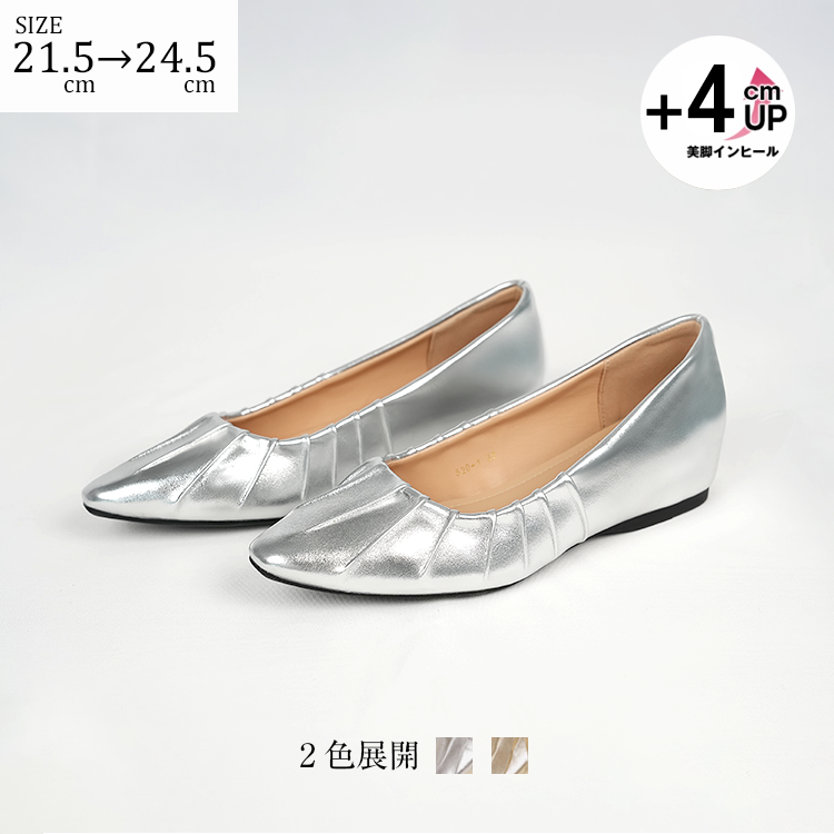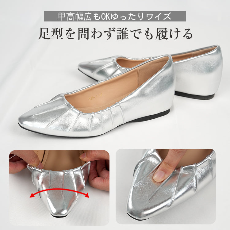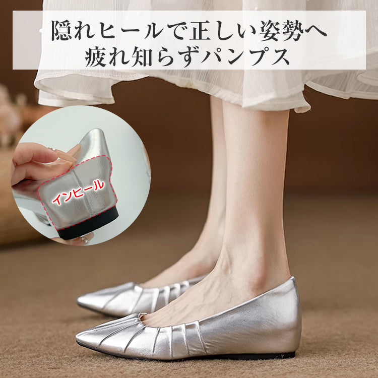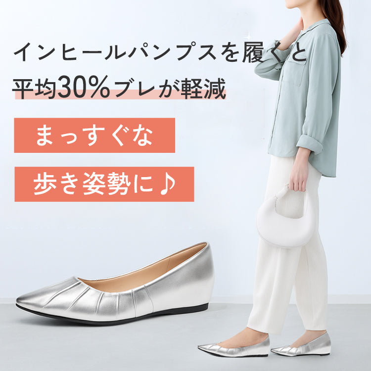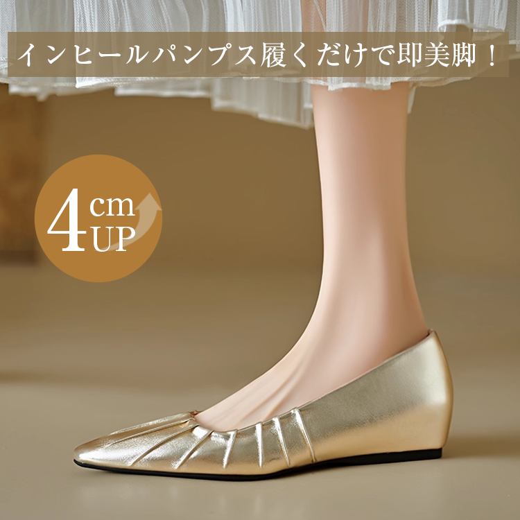 Yukari |【インフルエンサー愛用】インヒールギャザーパンプス ポインテッドトゥパンプス 4cmUP 幅広甲高 柔らか 晴雨兼用 疲れにくい