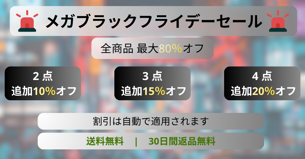 ブラックフライデー期間中、ベストセラー商品を最大80%オフの特別割引価格でご提供中!