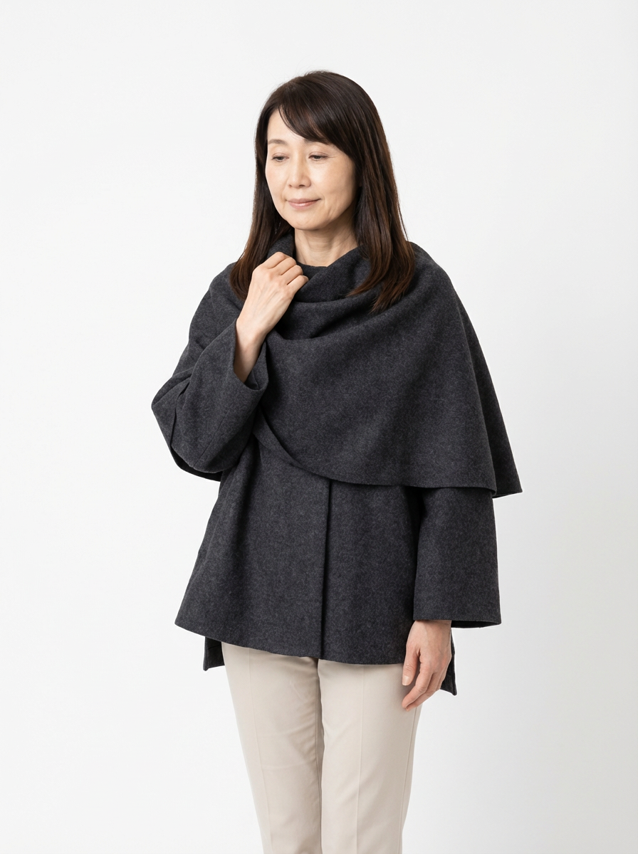 Reiko | 上品に包むスカーフ風デザイン中綿コート