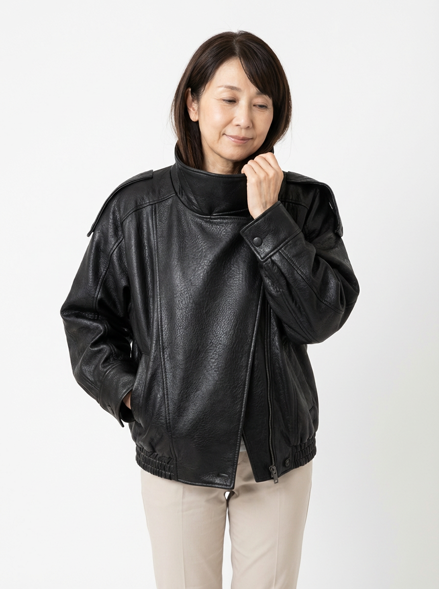 Junko | 洗練を纏うフェイクレザースタンドカラージャケット