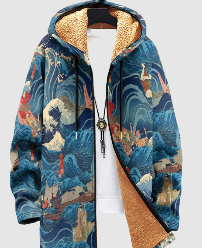 レトロな雰囲気と鮮やかな色彩を融合させたフード付きスウェット。まるでアート作品のように存在感があり、着るだけで個性をさりげなく引き立てます。軽くて柔らかい素材で、快適さも妥協しません。
