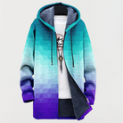 アヴァ | グラデーション六角形パーカーは、大胆なデザインと穏やかなカラーパレットを融合させた現代的でエレガントなアイテムです。ターコイズ、青、紫のトーンで構成された六角形の几何学模様が魅力的なグラデーション効果を生み出し、視覚的に印象的でありながら快適なパーカーを提供します。色のアクセントがある洗練された現代的なスタイルを好む方にぴったりです。