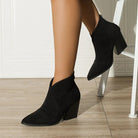 仕事からハッピーアワーまで、あらゆるシーンにぴったりのアンクルブーツ。アンクル部分のVカットが脚を長く見せ、必要不可欠なデザインが多用途で洗練されたスタイルの味方となります。