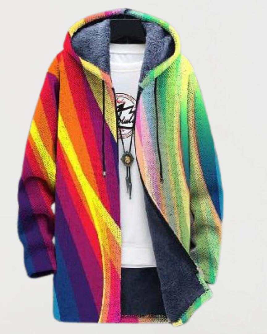 レトロな雰囲気と鮮やかな色彩を融合させたフード付きスウェット。まるでアート作品のように存在感があり、着るだけで個性をさりげなく引き立てます。軽くて柔らかい素材で、快適さも妥協しません。