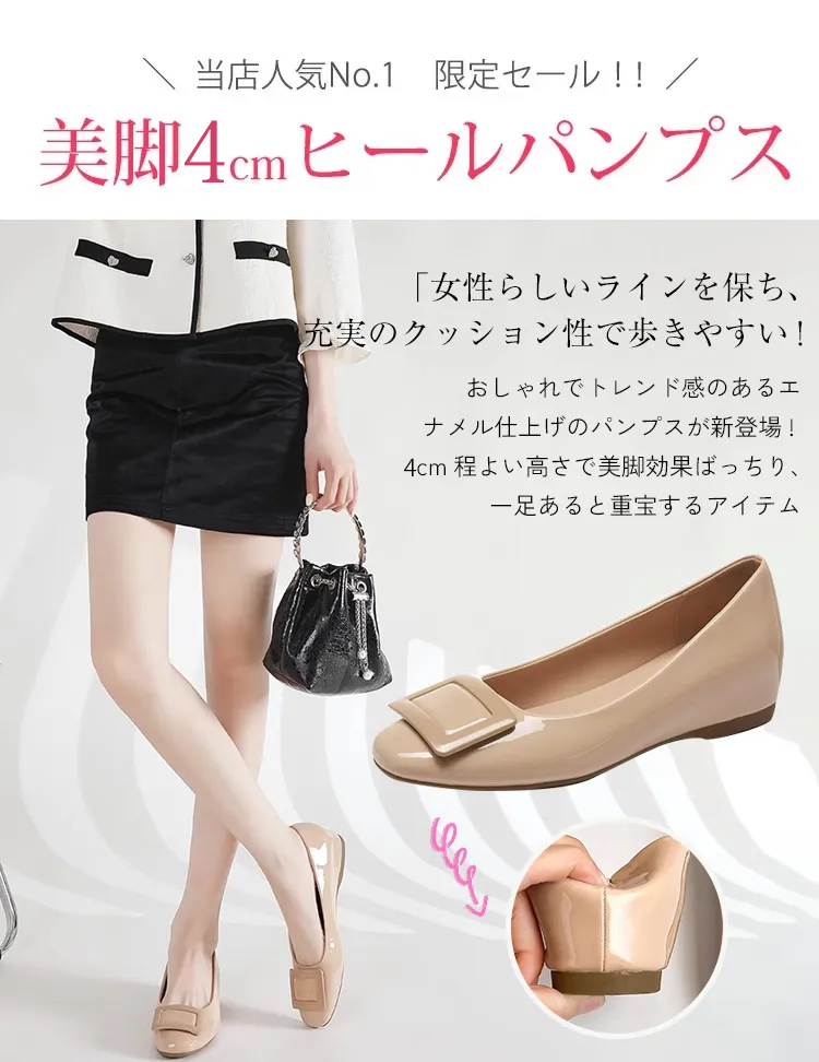 Airi |【高レビュー】バックルパンプス エナメルパンプス インヒール 4cm/6cmヒール 疲れにくい