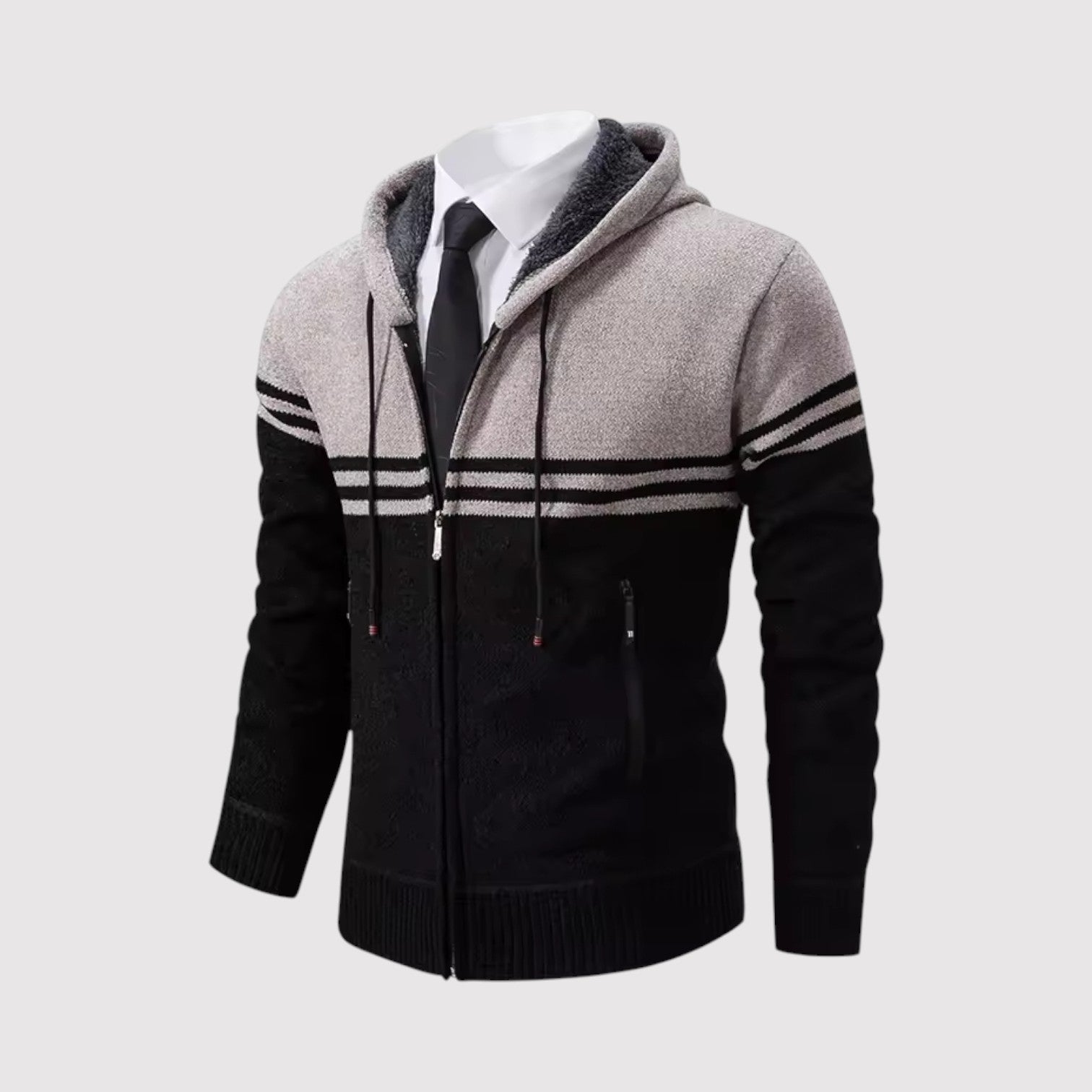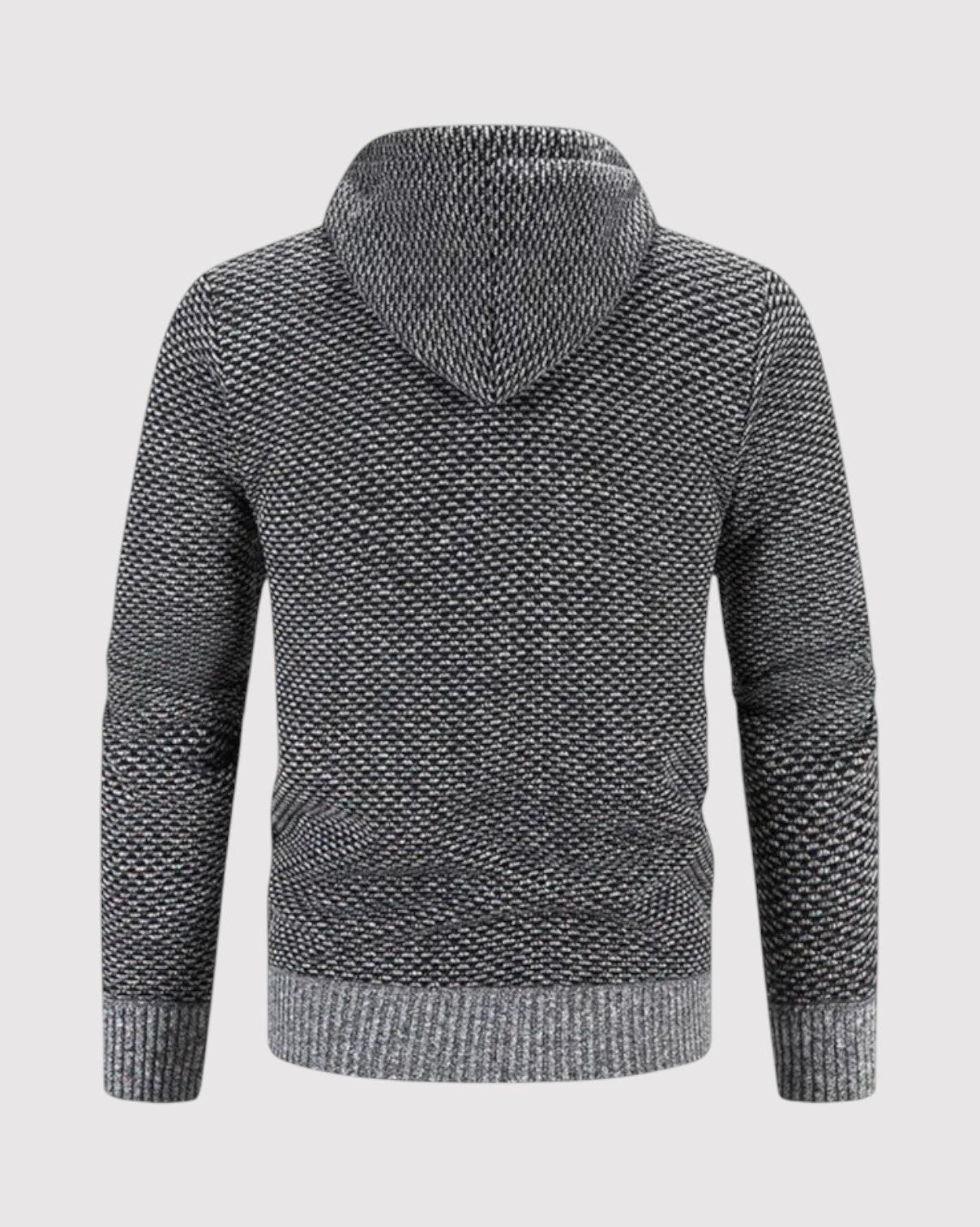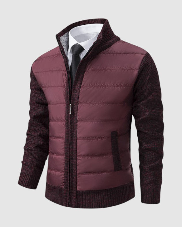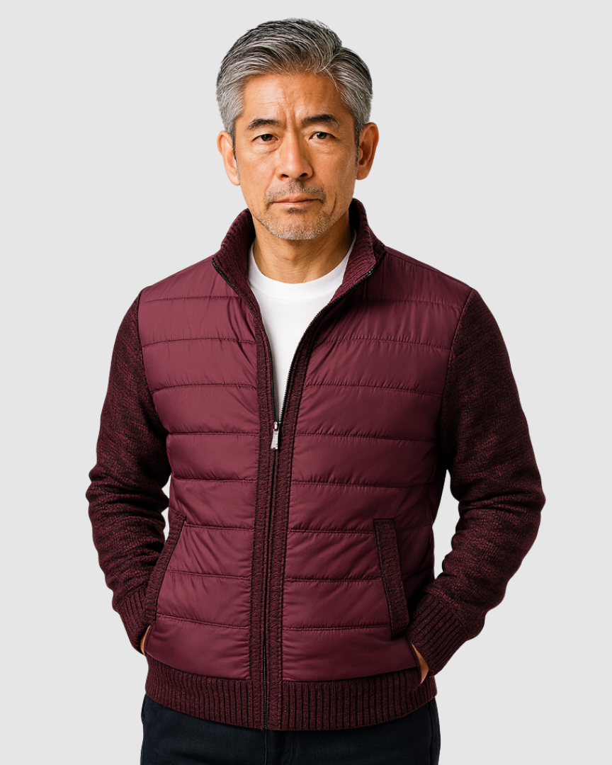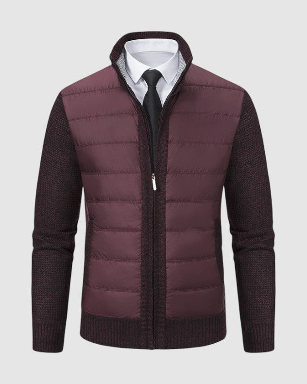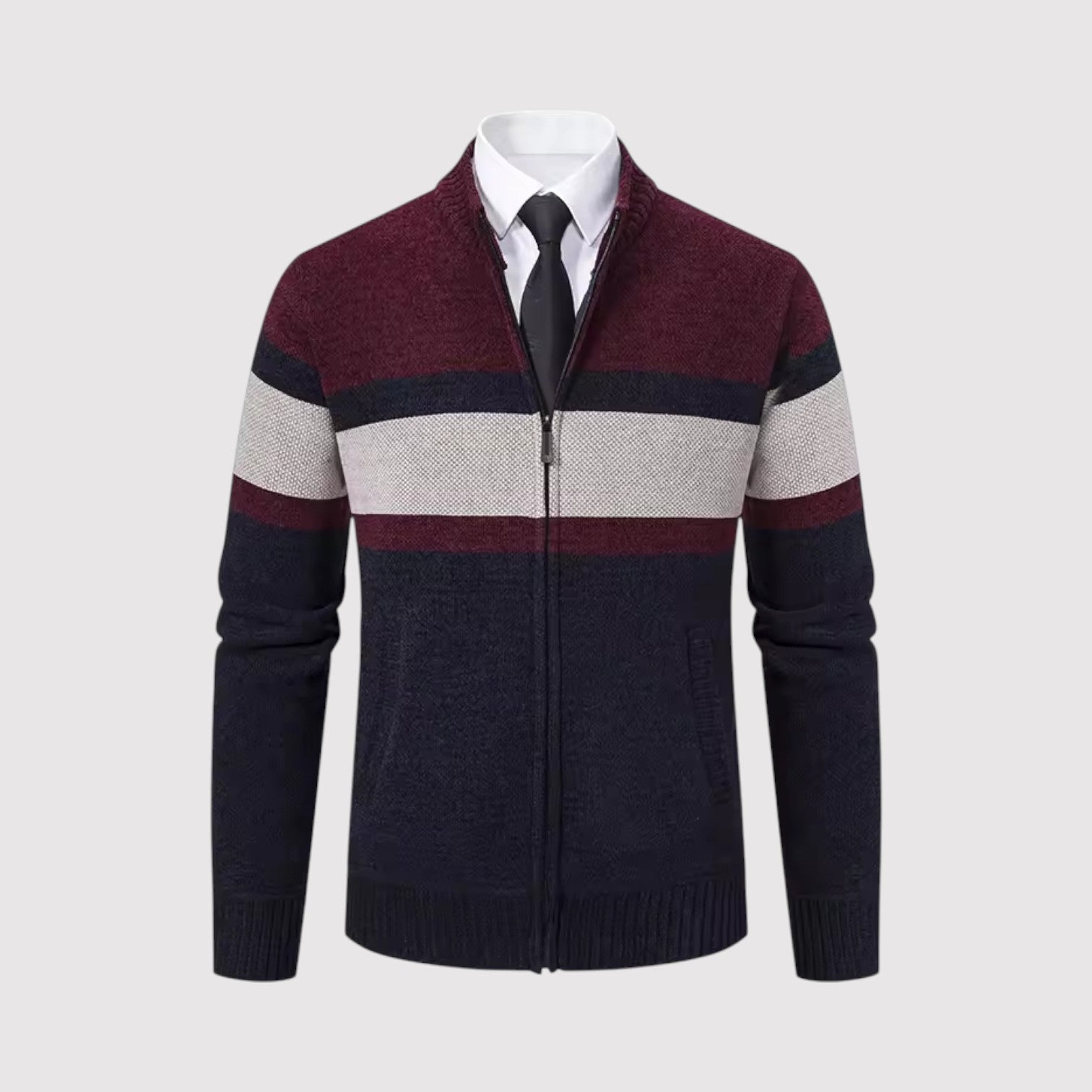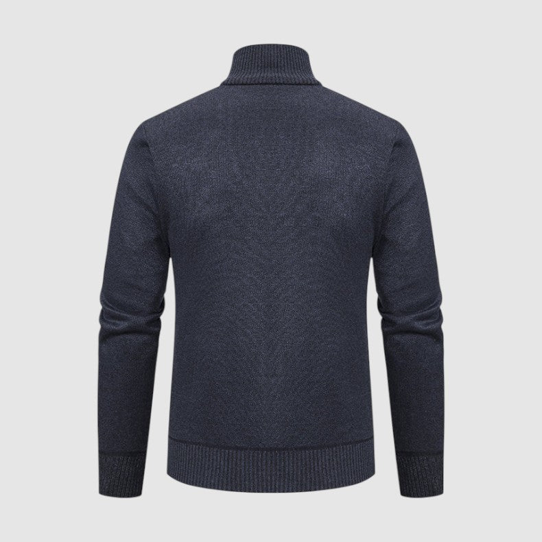 スタイルと快適さが見事に調和した一枚。優雅な幾何学模様のニットとシックなジップアップデザインが、ビジネスからレジャーまであらゆるシーンで活躍します。