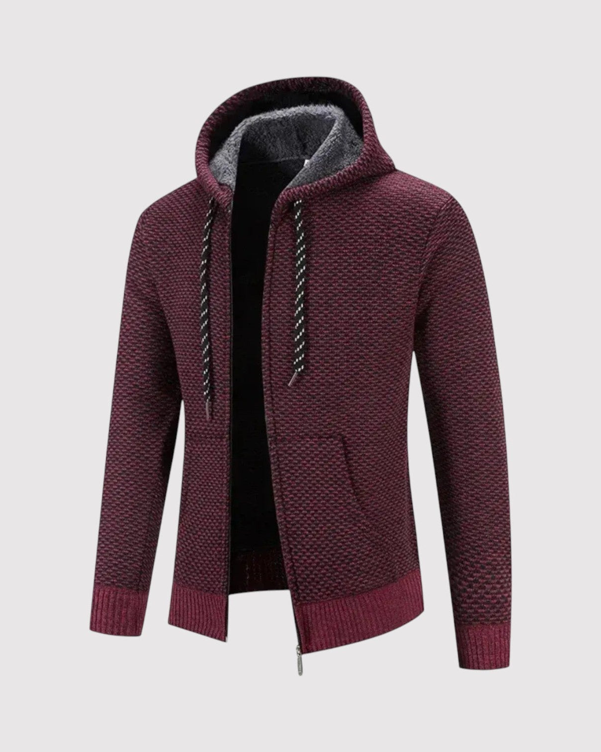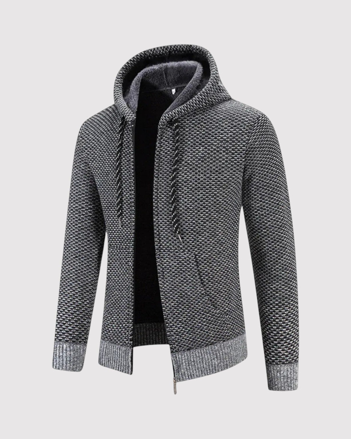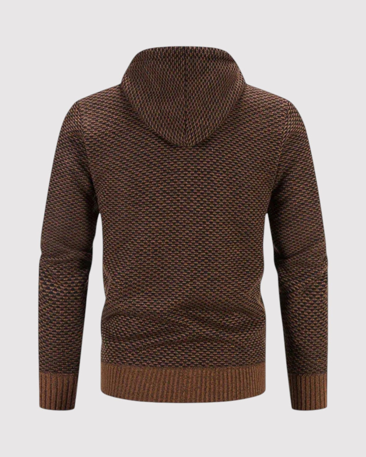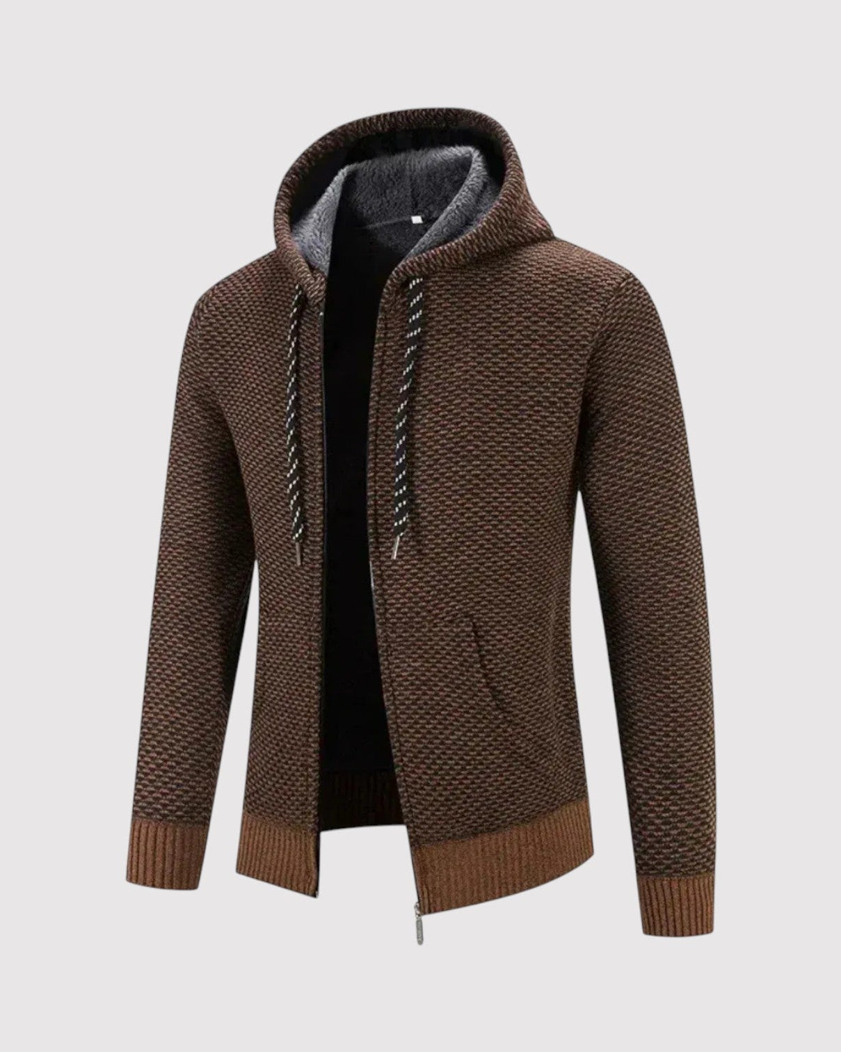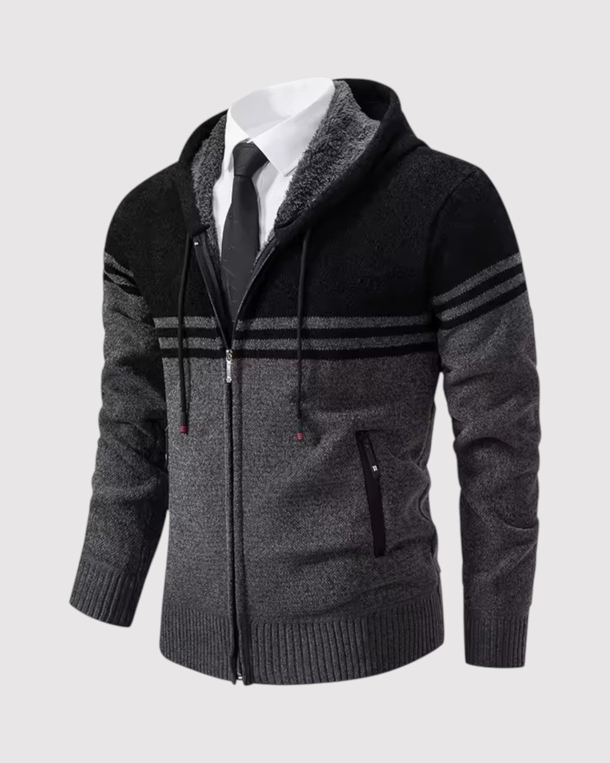 スタイルと快適さが見事に調和した一枚。優雅な幾何学模様のニットとシックなジップアップデザインが、ビジネスからレジャーまであらゆるシーンで活躍します。
