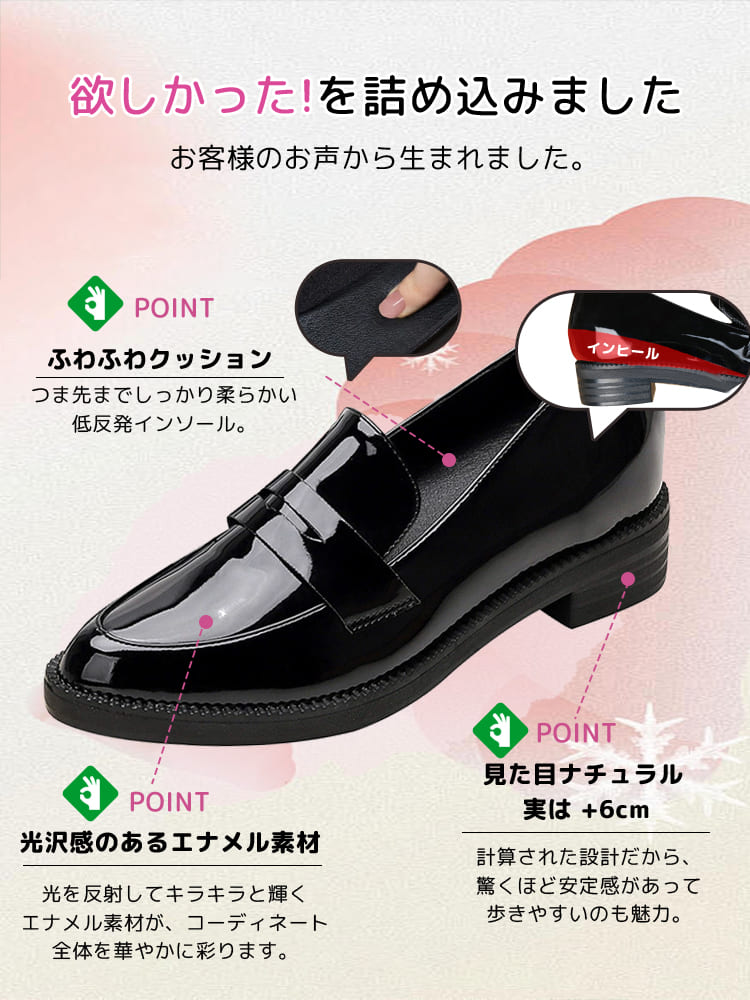 Mizuki |【6cmUP×スニーカーのような履き心地】インヒールローファー 痛くない 疲れない 立ち仕事 通勤 幅広 外反母趾 黒