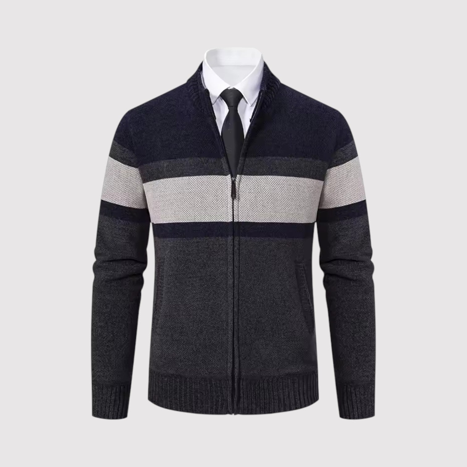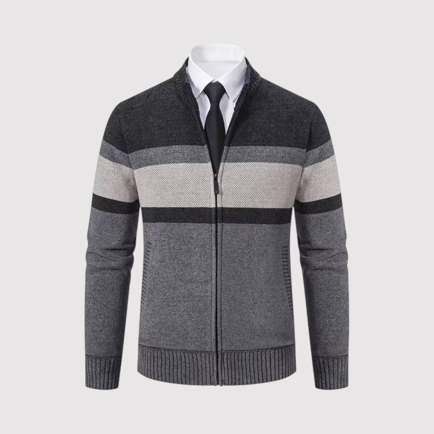 タイムレスな洗練をまとう「プレミアム・ストライプ・ジップ・セーター」——快適さ、自信、そして控えめな上品さを求める男性のために。